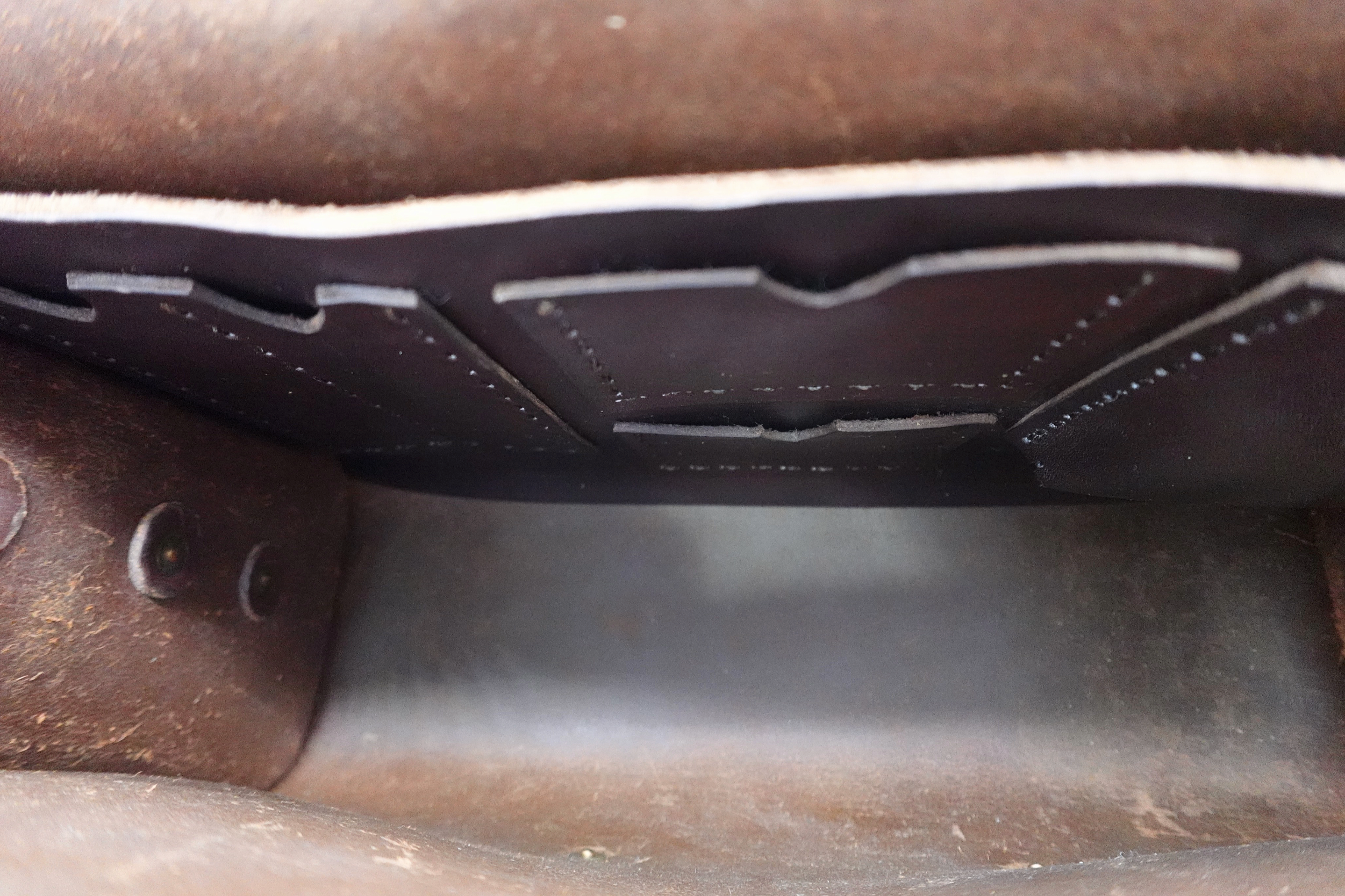Seasoned Collection Condition: This bag has a well-developed gentle patina from years of use. No major flaws. There is scuffing throughout, as is expected in an active leather carry. The Scotch Grunge leather has darkened with age and use. This bag has decades upon decades of life still in it.